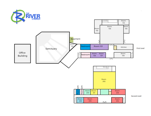 Join us for worship in the main building, which is the large building at the top of the parking lot.